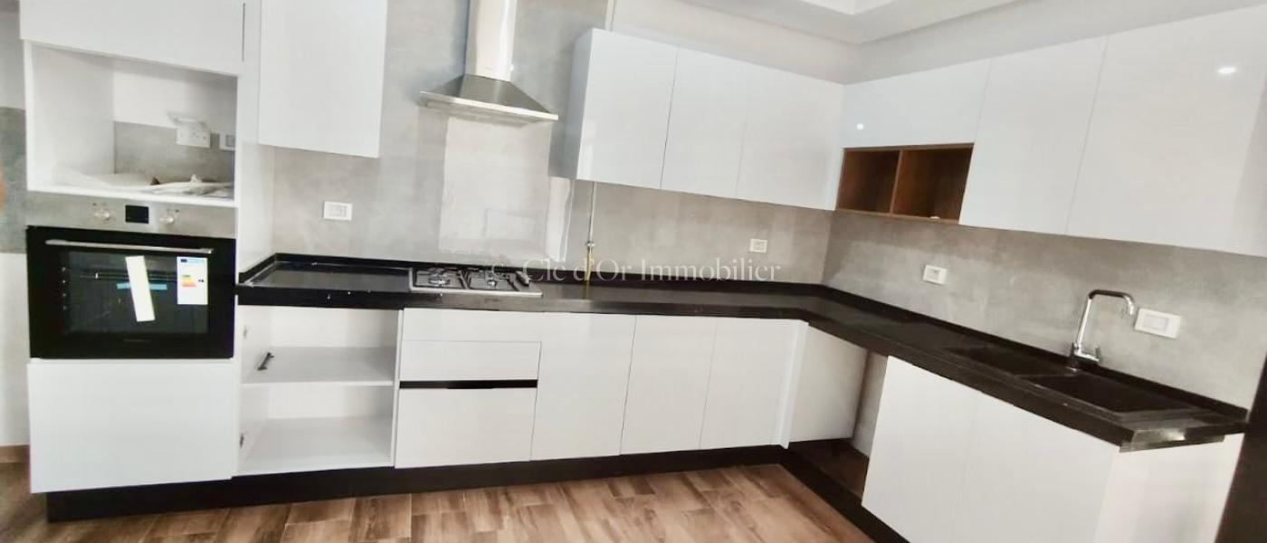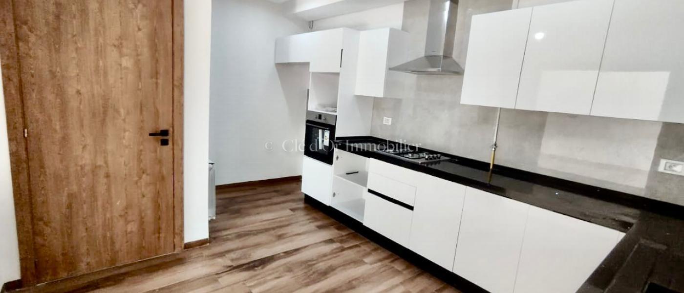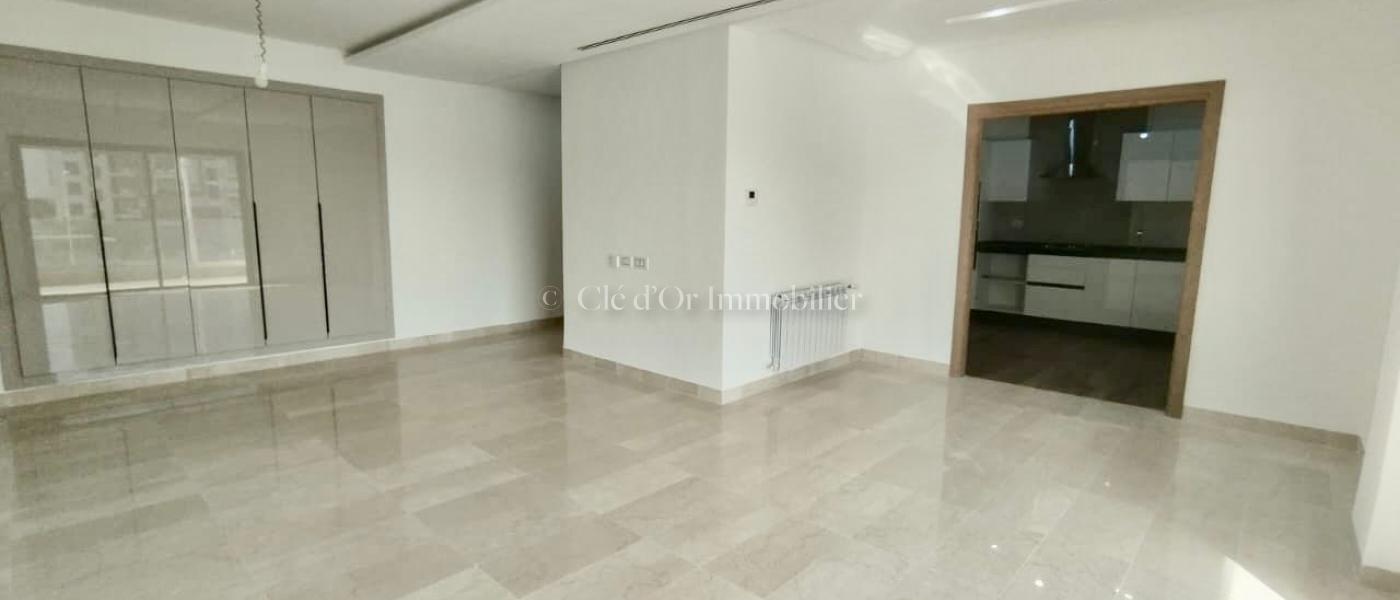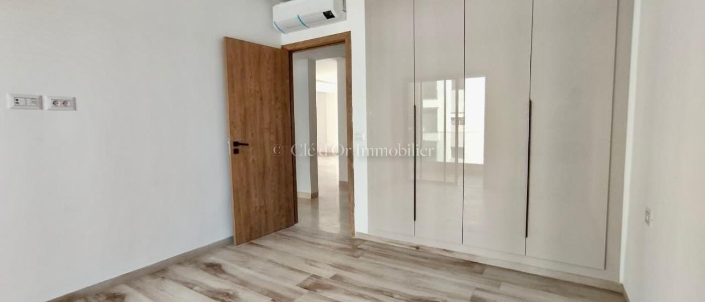 CLÉ D'OR IMMOBILIER met en location Cet appartement occupe le 2ème étage d'une résidence situé dans un quartier résidentiel. L'entrée donne sur une pièce de vie .Cette pièce jouit de la luminosité naturelle grâce à un balcon trés spacieux. La cuisine agencée est équipée par une hotte aspirante, une plaque de cuisson et d'un four électrique. Dans la continuité, Un hall aménagée avec un dressing pour plus de fonctionnalité. La partie nuit loge deux chambres à coucher, dont chacune est équipée par un dressing et une suite parentale. Une salle de bain est à disposition. L'appartement est équipé d'un chauffage central et climatisation centrale et a split systéme dans les chambres et la cuisine.tt