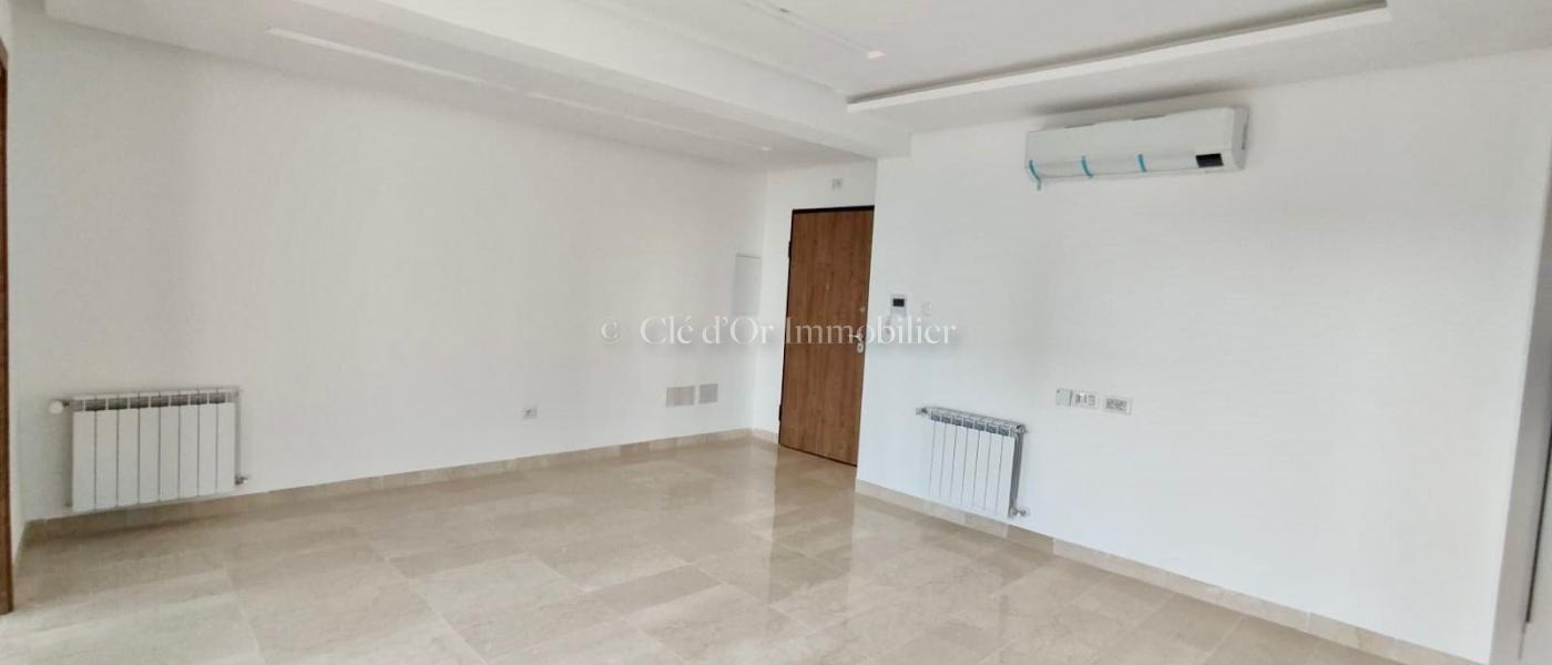 CLÉ D'OR IMMOBILIER met en location Cet appartement occupe le 3ème étage d'une résidence gardée, Il se distingue par son emplacement. Il est proche de tout commerce. La pièce de réception offre un espace de vie convivial revêtu en grès à la masse qui donne accès sur le balcon. La cuisine est agencée et équipée par une plaque de cuisson, une hotte aspirante, et un four électrique, Un hall aménagée avec un dressing pour plus de fonctionnalité, La partie nuit loge une chambre à coucher avec dressing. Une salle d'eau avec cabine de douche. L'appartement est équipé d'un chauffage central et climatisation a split systém.