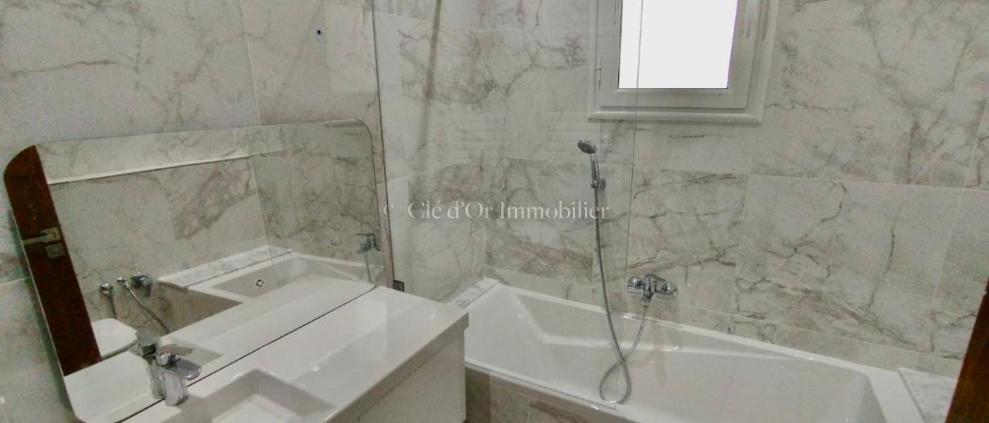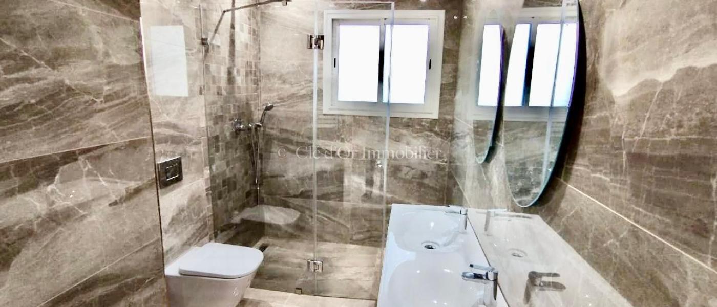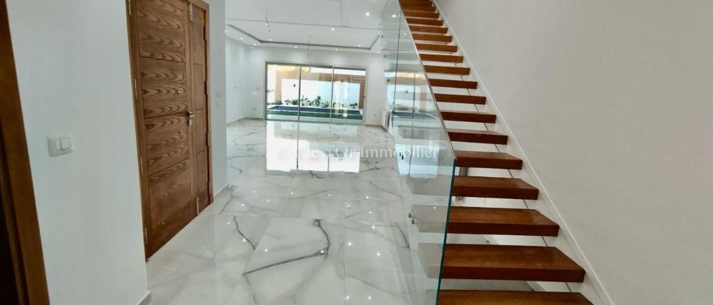 CLÉ D'OR IMMOBILIER met en Vente Ce duplex en cours de construction est situé dans un quartier calme et résidentiel, qui se distingue par son environnement. Il se trouve sur un terrain de 300 m². L'emplacement privilégié de ce duplex offre de nombreux avantages, notamment sa situation géographique dans une zone résidentielle renommée, avec toutes les commodités à proximité et un accès facile depuis l'avenue principale. Notre duplex présente une architecture contemporaine, avec une décoration chaleureuse et luxueuse. À l'extérieur, un jardin gazonné bien entretenu est agrémenté d'une piscine. L'entrée mène à un salon spacieux, bénéficiant d'une luminosité optimale grâce à de grandes baies vitrées offrant une vue sur le jardin. Il est orienté au sud-est. La cuisine est équipée de nombreux rangements, et complétée par un coin repas. Une salle d'eau pour les invités a été pensée. Au premier étage, on trouve trois suites, chacune avec son propre dressing et balcon . Ainsi qu'une salle de bain. Un grand terrasse vue sur mer à ce niveau. Ce duplex est équipé d'un chauffage central et de la climatisation à système split. Et une chambre de service.