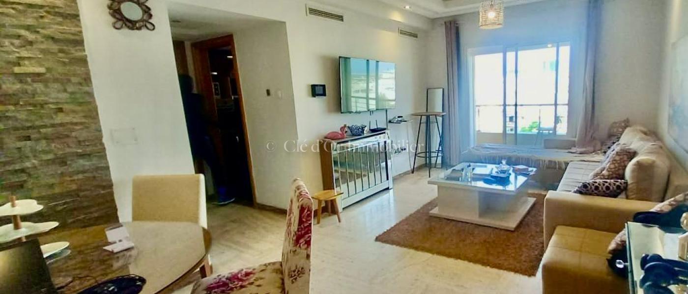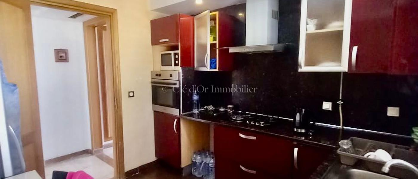 Clé d'Or immobilier offre un appartement pour vendre Cet appartement est situé au sein d'une résidence sécurisée. Son entrée s'ouvre sur un salon lumineux avec un accès direct à une terrasse, offrant ainsi un espace de vie spacieux et agréable. La cuisine entièrement équipée comprend une plaque de cuisson, une hotte aspirante, un four électrique et un micro-ondes. La partie nuit se compose d'une chambre à coucher et d'une salle de bain. La suite parentale, avec son propre dressing, constitue un véritable refuge de tranquillité et de confort.