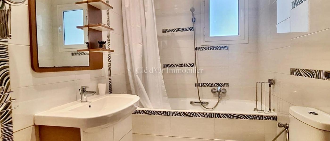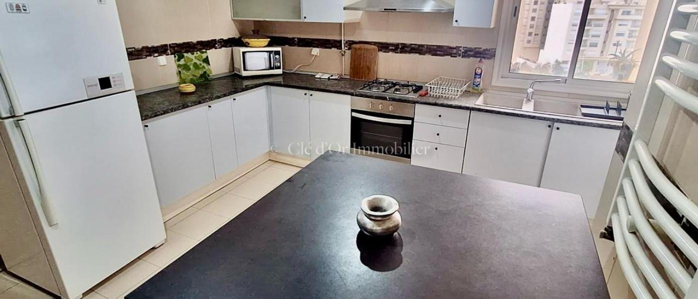 CLÉ D'OR IMMOBILIER met en location Une appartement dans un quartier calme à JARDINS DE CARTHAGE. Ce dernier est composé d'un salon lumineux avec un balcon, une cuisine équipée , une suite parentale, deux chambres à coucher avec dressings, une salle de bain et une salle de douche. L'appartement est équipé par chauffage central et climatiseurs en Split PP au sous sol