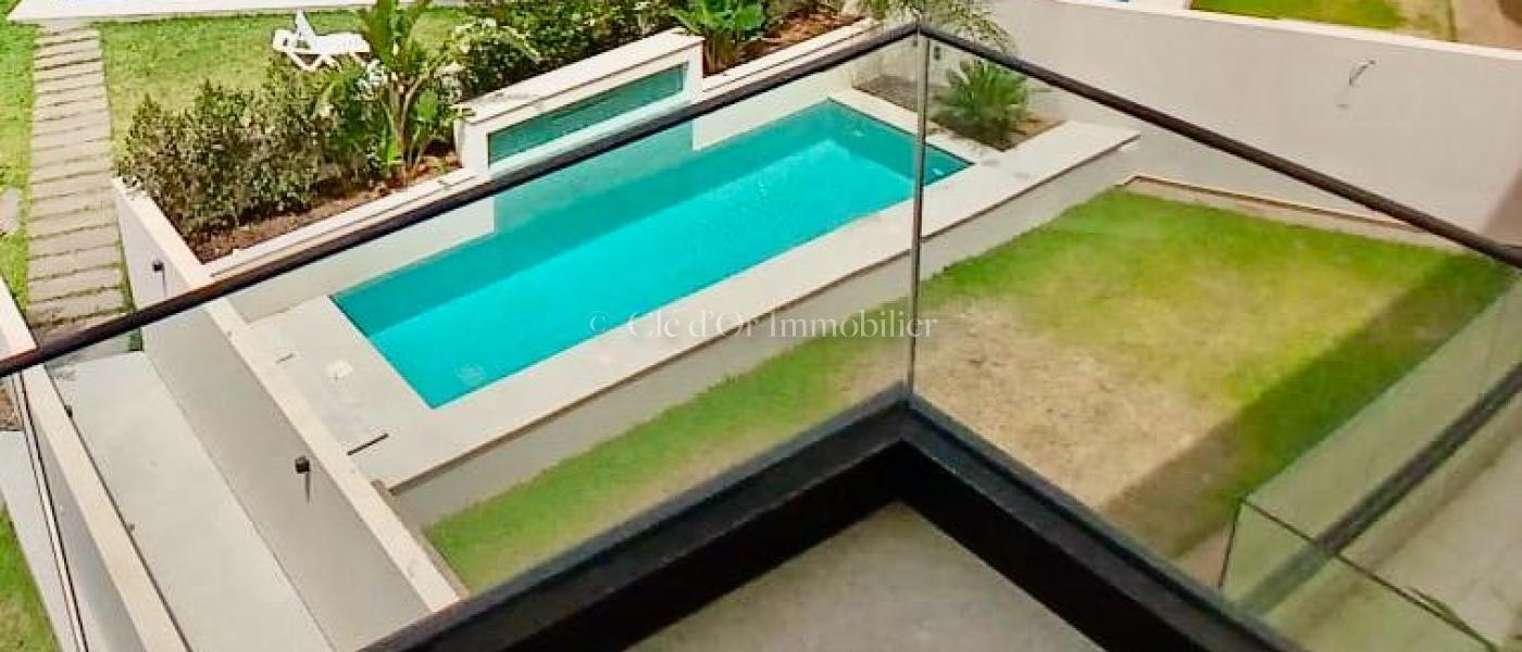 A vendre S2 avec piscine commune S:103m² Salon avec balcon de vue sur piscine Cuisine bien équipée Sans place parking Place parking 25MD
