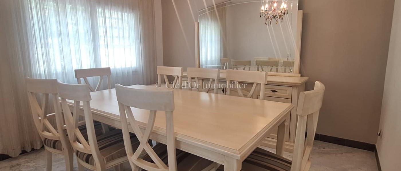 CLÉ D'OR IMMOBILIER met en location Cet duplexe représente une véritable oasis de confort, nichée dans un quartier paisible et sélectif. Son jardin bien entretenu, elle offre un cadre verdoyant. Dès l'entrée, on est accueilli par un hall chaleureux qui donne le ton pour le reste de la maison. La pièce de vie principale bénéficie d'une luminosité naturelle grâce à ses nombreuses ouvertures, créant ainsi une atmosphère conviviale. Elle donne accès sur une piscine pour les moments de détente et de confort supplémentaire. La cuisine est entièrement aménagée et équipée d'une hotte, d'une plaque et d'un four, elle répond aux besoins des amateurs de cuisine les plus exigeants. Un espace séjour et une salle d'eau pour les invités complètent l'espace de vie principal..Enfin pour la parti de jour une chambre burautique. À l'étage, un suite parentale et troix chambres offrent un espace privé et confortable pour les membres de la famille, chacune avec leur propre salle de bain . À l'extérieur, un garage pour deux voitures assure un stationnement sécurisé ainsi qu'un chambre de service .