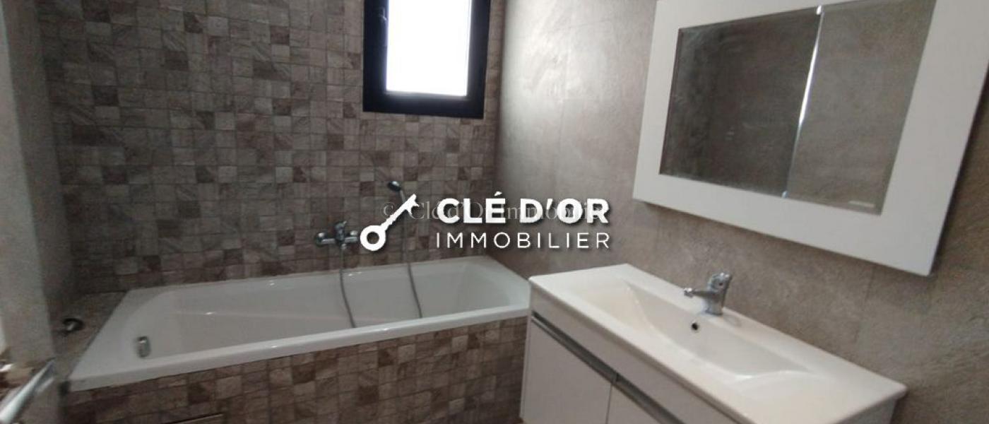 CLÉ D'OR IMMOBILIER met en location Un appart S3 situé au 5ème étage dans une résidence bien gardée aux Jardins de Carthage. A l'entrée, on a un salon avec balcon, une cuisine équipée avec un séchoir, une salle d'eau pour les invités, 3 chambres à coucher avec dressing et une salle de bain commune. On a une place de parking au sous-sol. Pour tous renseignements, veuillez nous appeler sur le 98191092
