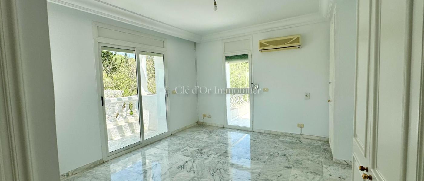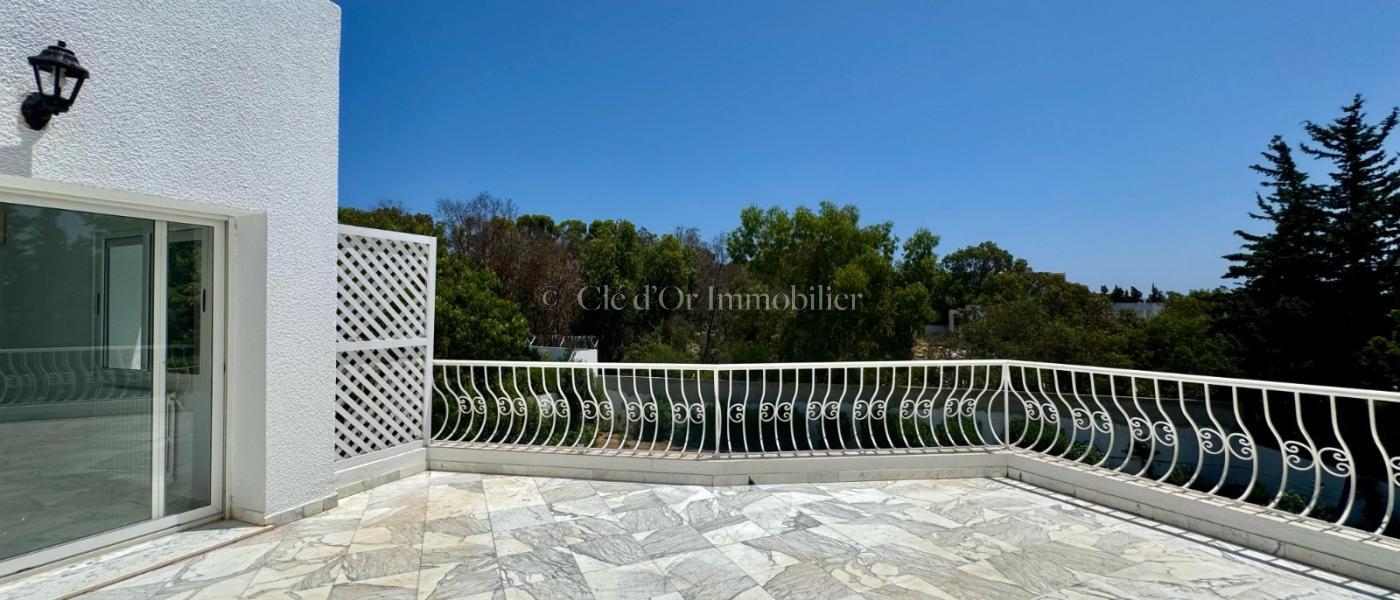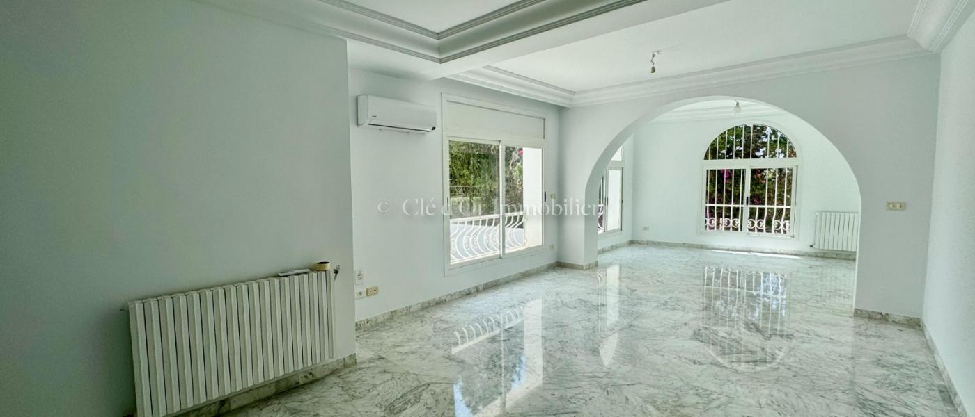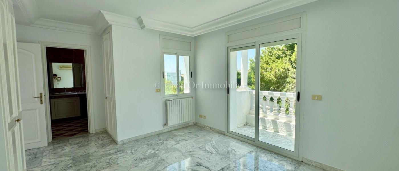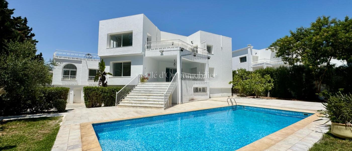 Une Spacieuse Villa S4 avec Piscine à Gammarth: Emplacement : Située dans un secteur calme et sécurisé à Gammarth, cette villa offre un cadre de vie agréable, parfait et sécurisé pour une famille . Composition de la villa : Au rez-de-chaussée : Un vaste salon lumineux avec accès direct au jardin et à la piscine •Une cuisine spacieuse, entièrement équipée et parfaitement aménagée : électroménagers, vaisselle,… tout est prêt pour une utilisation immédiate •Une salle d’eau pour les invités Au 1 er étage : •4 suites, chacune avec salle de bain privative et balcon, offrant confort et intimité à chaque membre de la famille. Au sous-sol : •Un garage spacieux •Une chambre de service avec sa propre salle de bain •Une pièce de stockage pratique (idéale pour conserver les aliments ou autres provisions) Extérieur : Jardin arboré •Piscine privée bien entretenue •Espaces extérieurs parfaits pour les moments de détente. Villa bien entretenue, fonctionnelle et très agréable à vivre.