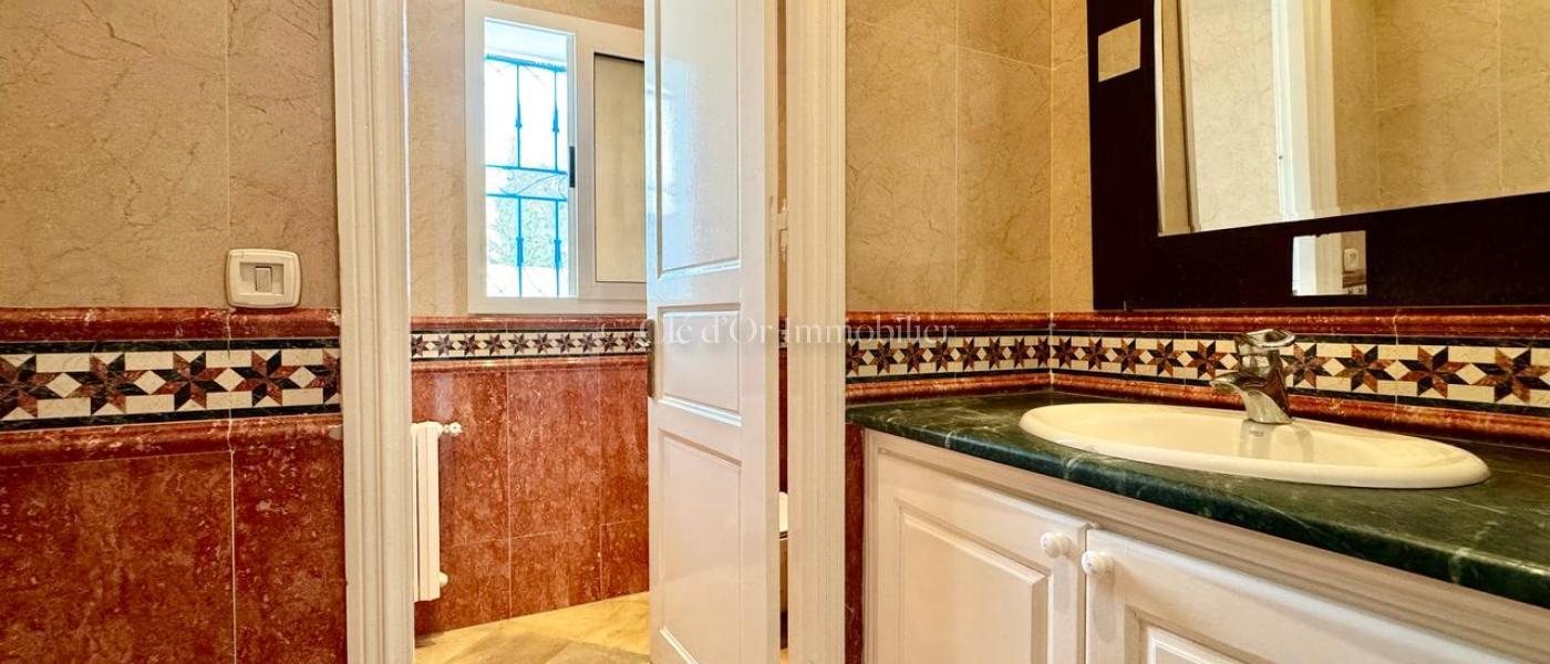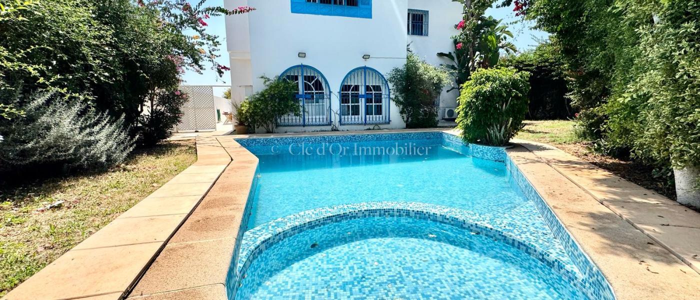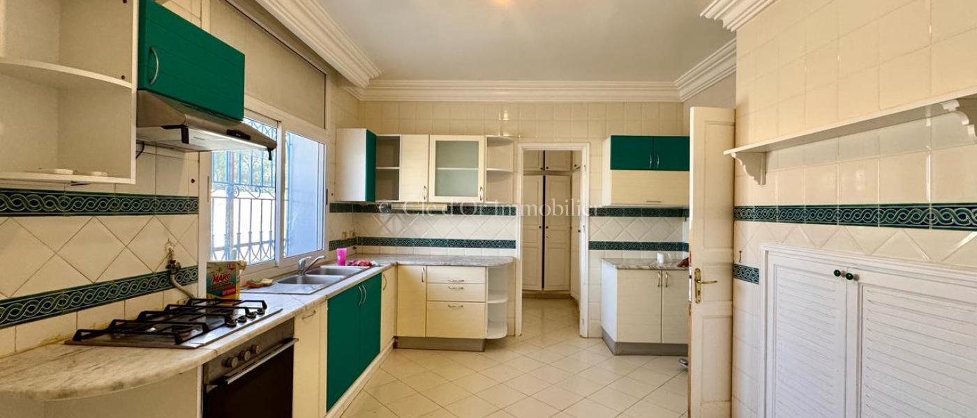 Une magnifique villa à louer à Gammarth, offrant de beaux volumes et un agencement idéal pour les familles. Au rez-de-chaussée, vous trouverez un grand salon, une salle d'eau pour invités, une chambre de service et un espace de rangement pratique aménagé sous l'escalier, parfait pour vos effets personnels. Une pièce supplémentaire polyvalente est également disponible, idéale pour un bureau ou une chambre d'amis. L'étage dédié à l'espace nuit se compose d'une suite parentale luxueuse et de trois autres chambres confortables.
