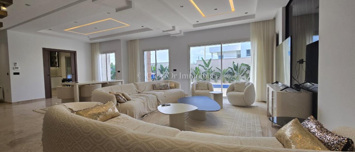 Ce magnifique triplex est composé de : *Au rez-de-chaussée : un vaste espace de vie ouvert sur un jardin avec piscine accueillant le salon, la salle à manger et la cuisine. *A l'étage supérieur : trois élégantes suites offrant une vue imprenable sur la piscine. *Au dernier niveau : Deux suites avec leurs kitchenettes & salons privatifs, ainsi qu'un accès direct à l'ascenseur. *Trois places de parkings et un grand cellier.