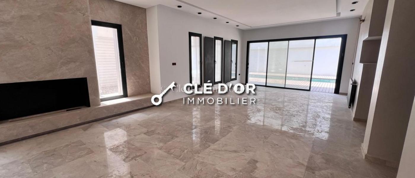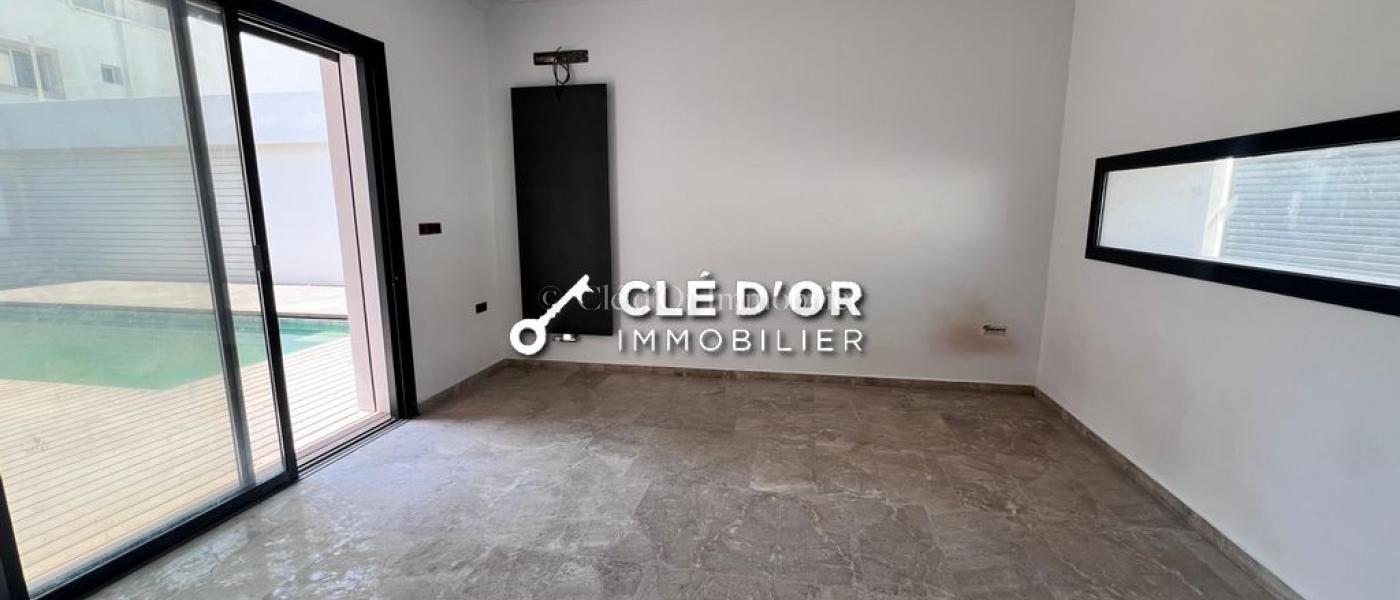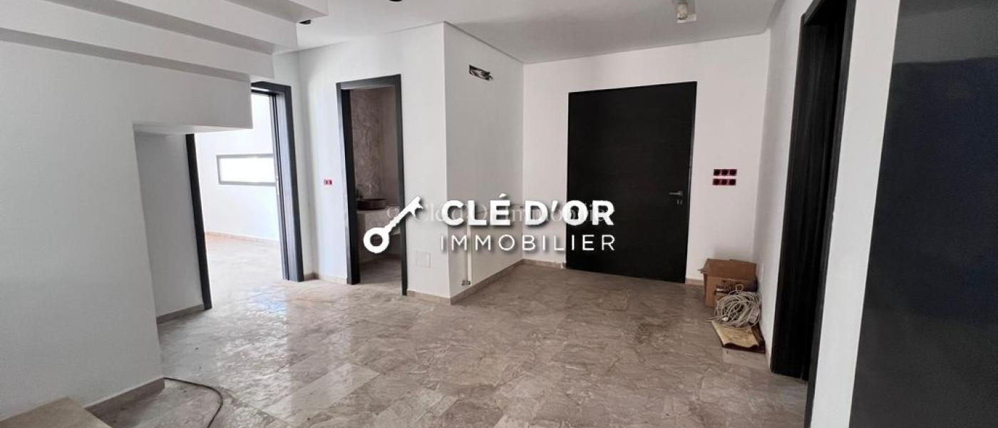Clé D’Or Immobilier met en location une villa S3 aux Jardins de Carthage, composée comme suit : Au rez-de-chaussée : un grand séjour lumineux, un salon spacieux, une salle d'eau invités et une cuisine entièrement équipée. L'extérieur est un véritable havre de paix avec son jardin et une piscine rafraîchissante. À l'étage : Deux chambres avec dressing, partageant une salle de bain commune ainsi qu'une suite parentale.