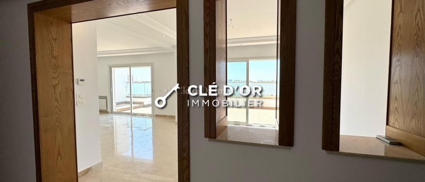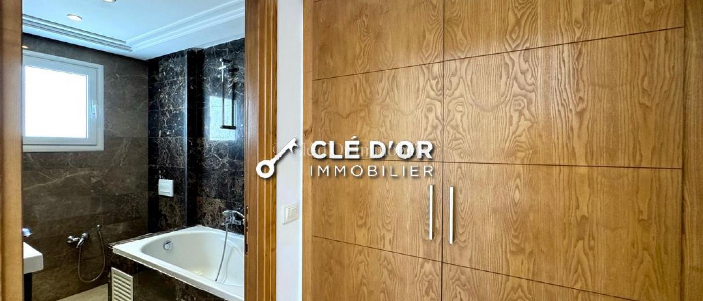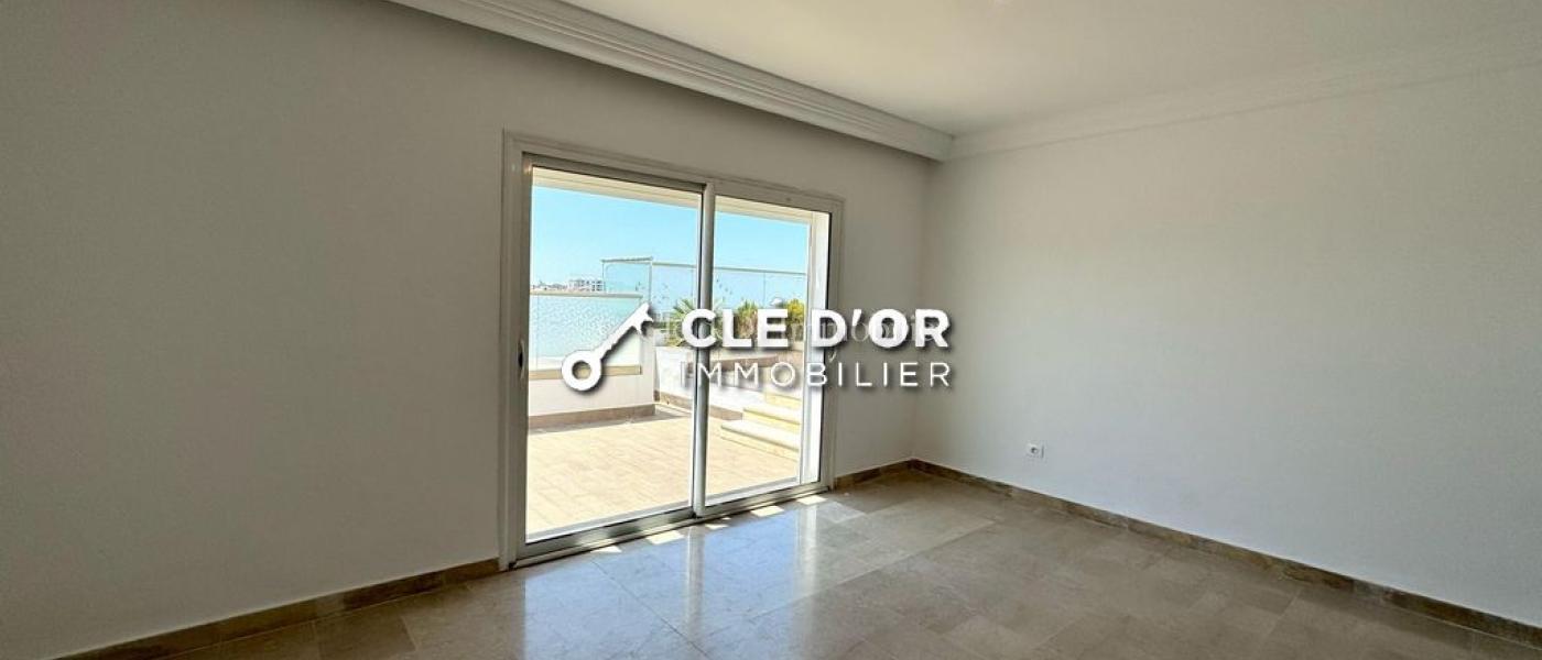 Clé D’Or Immobilier met en location un penthouse avec piscine aux Jardins de Carthage, composé comme suit : un salon spacieux, 3 suites parentales, une chambre à coucher. Une place de parking sous-sol et une piscine privée complètent ce bien.