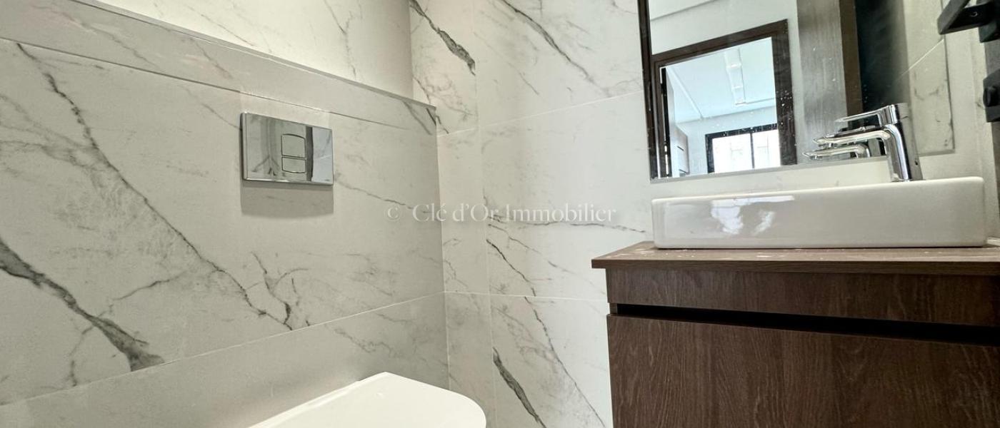 Clé D'Or Immobilier met en vente un S3 aux jardins de Carthage de superficie 155 m2, composé de 2 chambres, une suite, une salle de bain et une cuisine aménagée et équipée. Le prix d'achat de ce bien est estimé à 7760000 TND dont le prix de m2 est estimé à 4950 en TTC et 30000 TND est le prix de la place sous sol.
