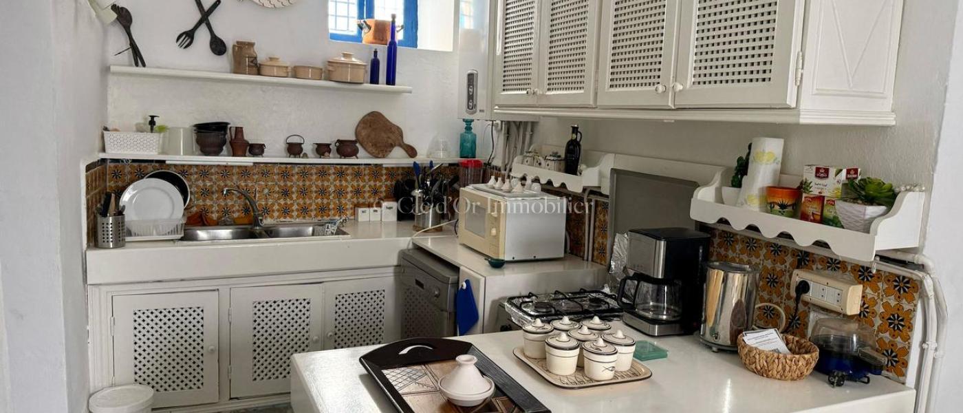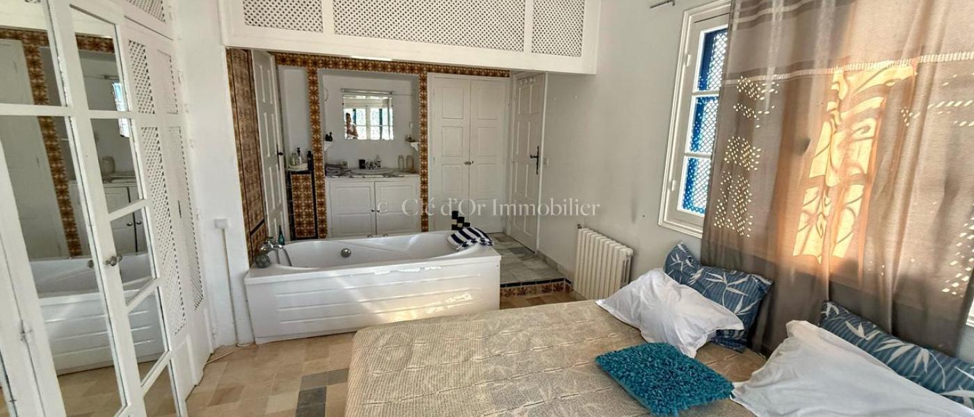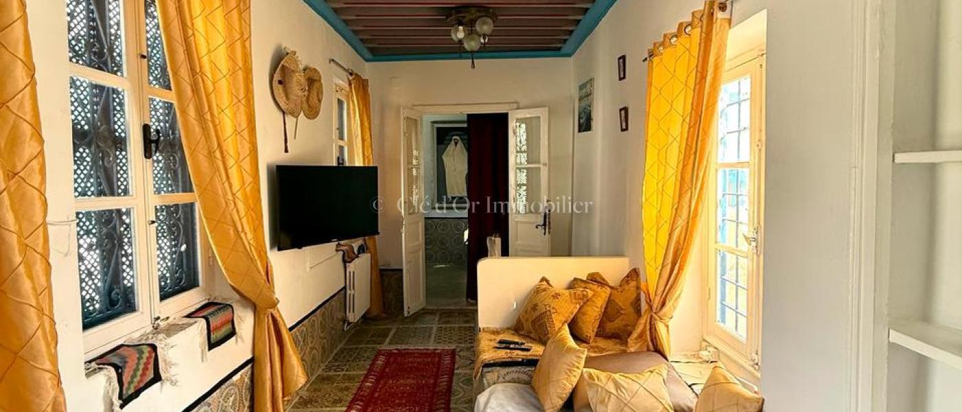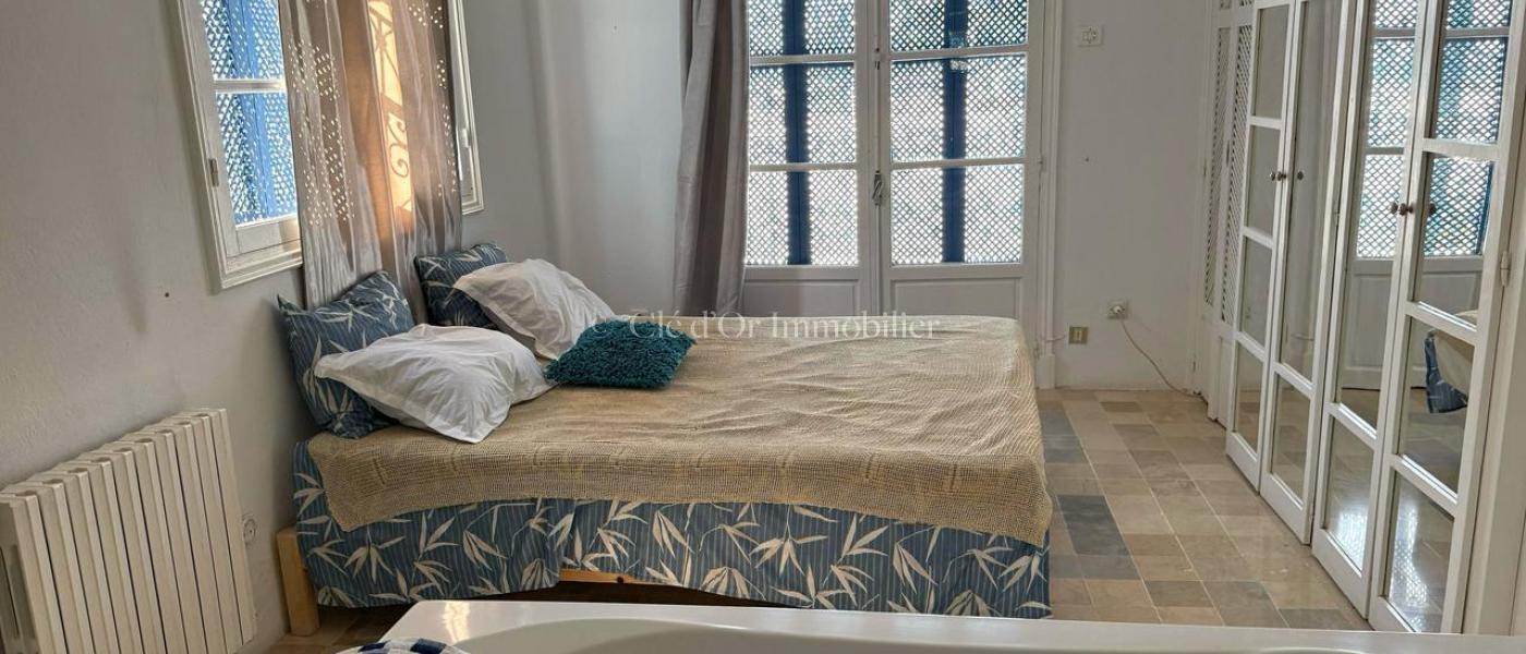 CLE D'OR IMMOBILIER met en location une villa meublée située au cœur de Sidi Bou Saïd composée de : 3 chambres au total : 2 au rez-de-chaussée et 1 à l’étage, Une suite parentale avec jacuzzi et accès à une grande terrasse panoramique (rooftop) offrant une vue imprenable, une cuisine entièrement équipée, espaces de vie lumineux et décorés avec goût, mobilier de qualité et ambiance chaleureuse. Ce bien est distingué par l'architecture authentique de Sidi Bou Saïd, mêlée avec des finitions modernes.