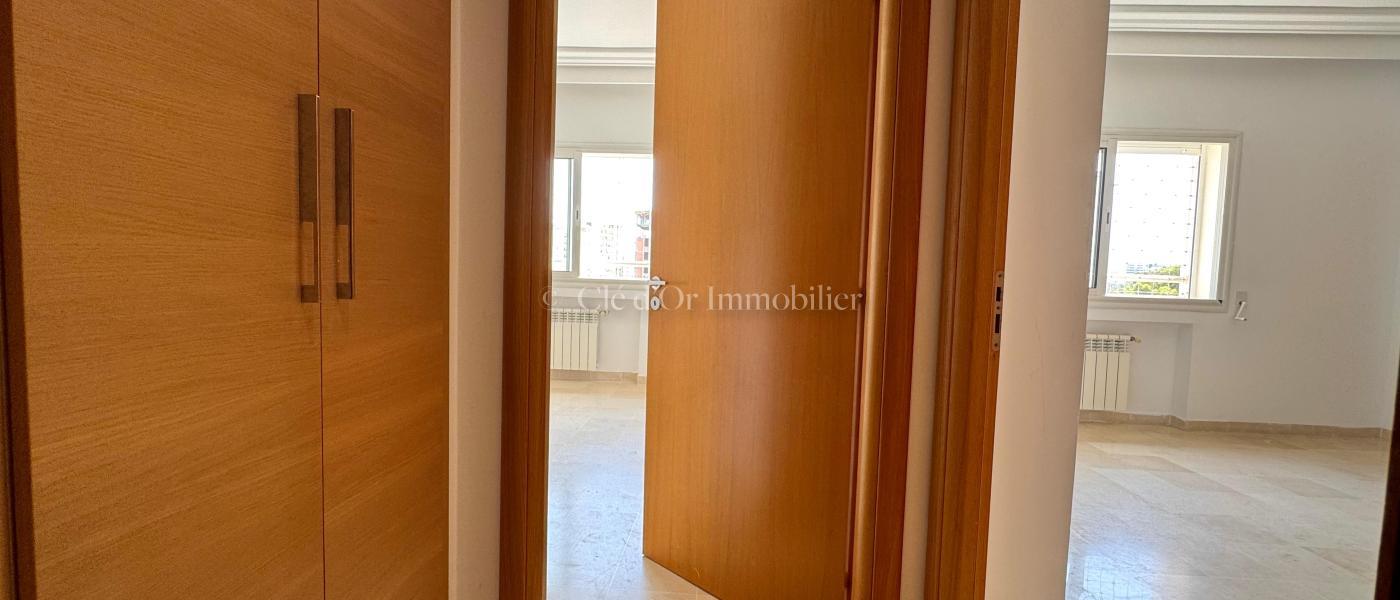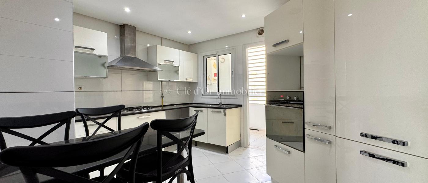 CLE D'OR IMMOBILIER met en location un spacieux appartement S4 aux Jardins de Carthage dont la composition est la suivante : salon lumineux avec balcon, cuisine équipée avec séchoir, salle d’eau invités (douche italienne), 3 salles de bain, suite parentale avec dressing et salle de bain . L'emplacement de ce bien est idéal, proche de toutes commodités.