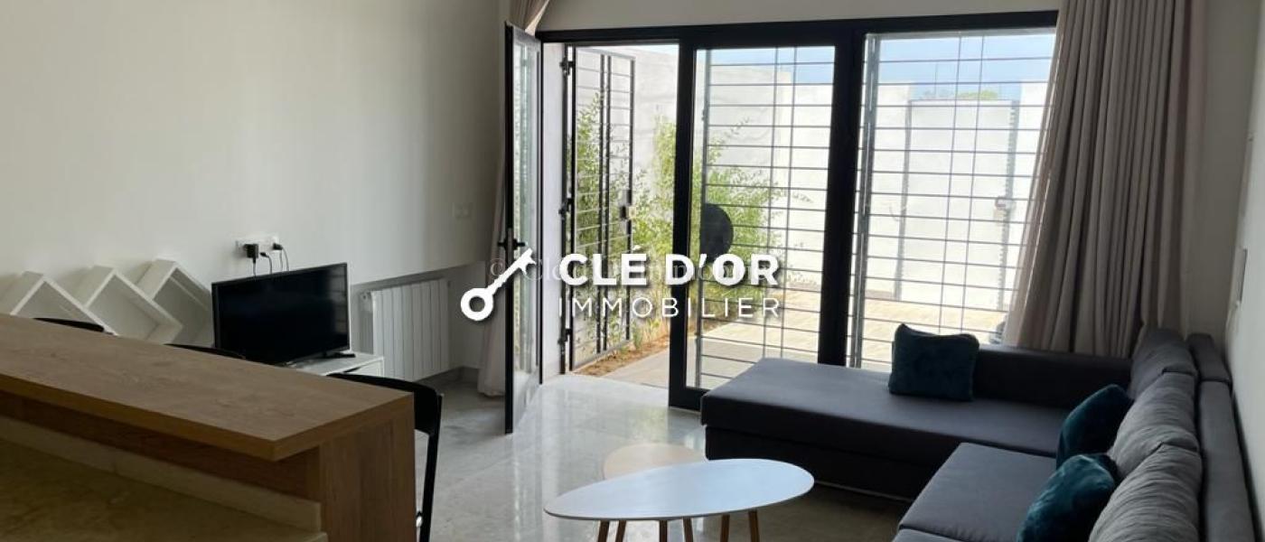 CLÉ D'OR IMMOBILIER met en location : ce magnifique appartement S1 haut standing, entièrement meublé avec goût et prêt à vivre ! Il se compose de : Un salon ouvert sur une cuisine moderne entièrement équipée (frigo, four, plaque, hotte, lave-linge) Une chambre avec dressing donnant sur une terrasse ensoleillée Une salle d’eau avec douche à l’italienne Chauffage central avec climatisation installés Situé dans un quartier calme et résidentiel à Chotrana, proche de toutes commodités