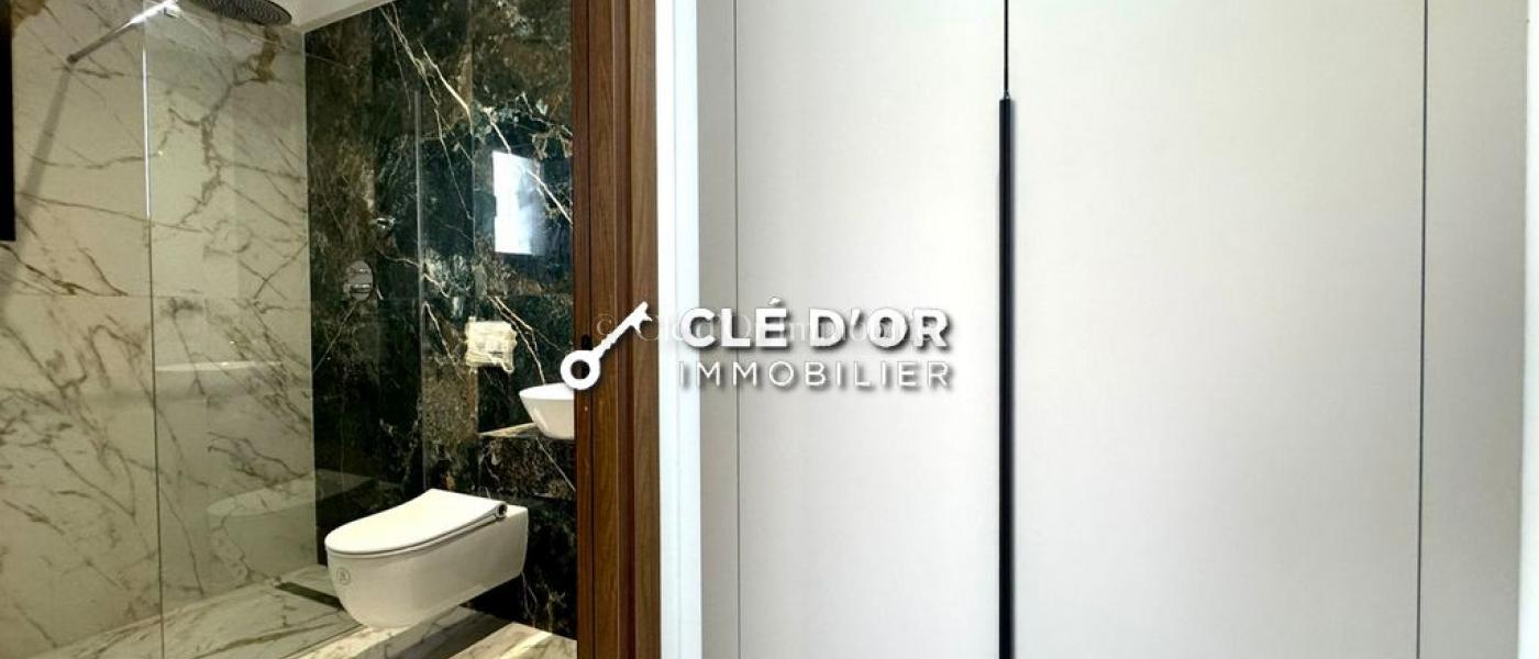 Clé d'Or Immobilier vous propose à la vente: un bel appartement S1 , situé dans une résidence récente, calme et sécurisée au cœur des Jardins de Carthage. Il se compose d’un salon lumineux ouvrant sur un balcon une cuisine moderne équipée (plaque, hotte, four) avec un séchoir attenant La partie nuit comprend une chambre à coucher spacieuse avec dressing une salle de bain avec douche à l’italienne.