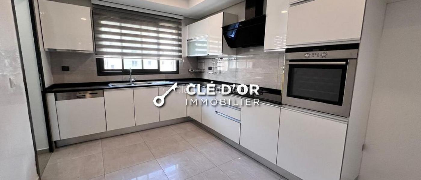 CLÉ D'OR IMMOBILIER met pour la location : ce bel appartement S3 situé dans une résidence moderne, calme et sécurisée au Jardin de Carthage. Il se compose d’un spacieux salon lumineux ouvrant sur un terrasse d’une cuisine entièrement équipée avec un séchoir, et d’une salle d’eau pour les invités. La partie nuit abrite trois chambres, dont une suite parentale avec sa salle de bain privative, ainsi qu’une salle de bain commune pour les deux autres chambres. L’appartement dispose également d’une chambre de service Chauffage central et climatisation en Split Place de parking au sous-sol Résidence gardée et bien entretenue 98191092