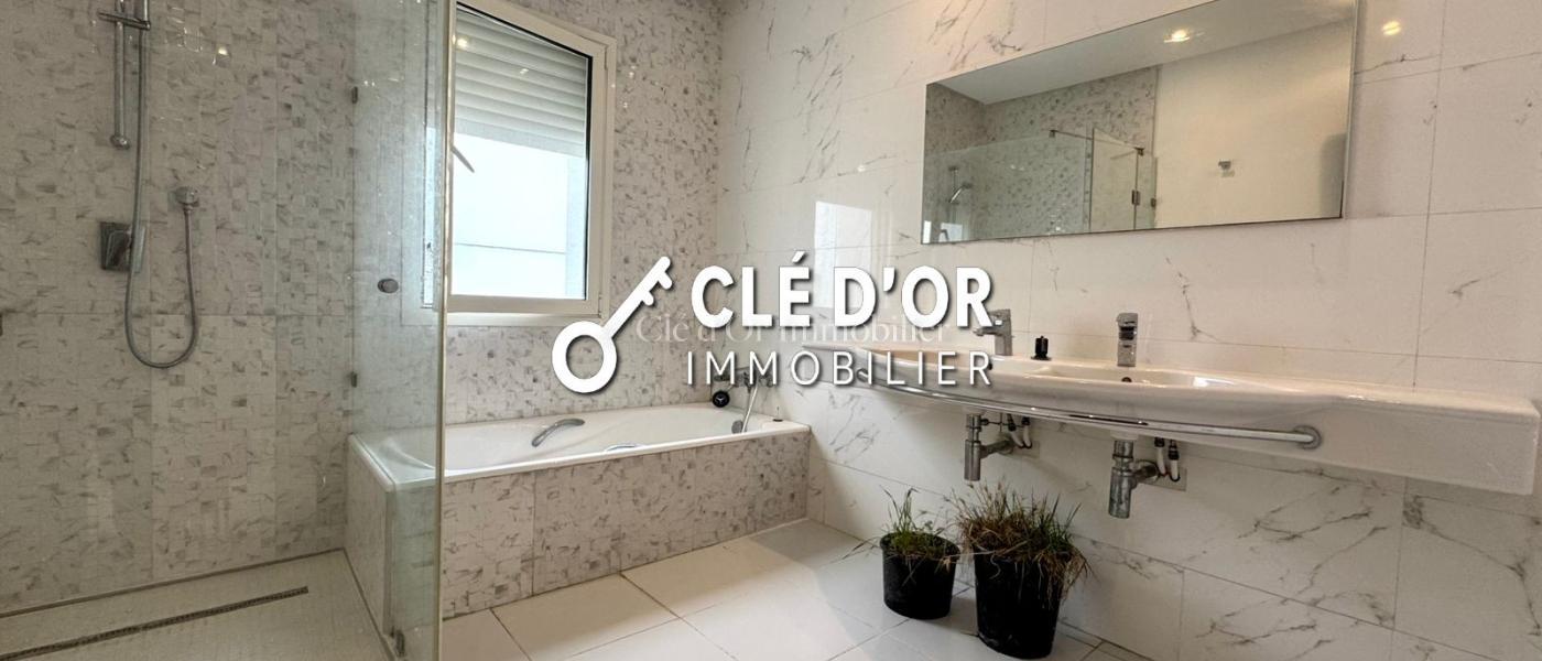 Clé d’Or Immobilier propose à la location une villa avec piscine de haut standing située à Gammarth, dans un quartier résidentiel calme et prisé. La villa se répartit sur trois niveaux : À l’étage : Trois suites, dont une suite parentale et deux suites junior, offrant confort et intimité Au rez-de-chaussée : Un salon spacieux et lumineux Un salon de séjour Une chambre Une salle d’eau pour les invités Au rez-de-jardin : Une chambre de service Une buanderie Un local technique Une chambre supplémentaire Un garage pouvant accueillir jusqu’à trois voitures
