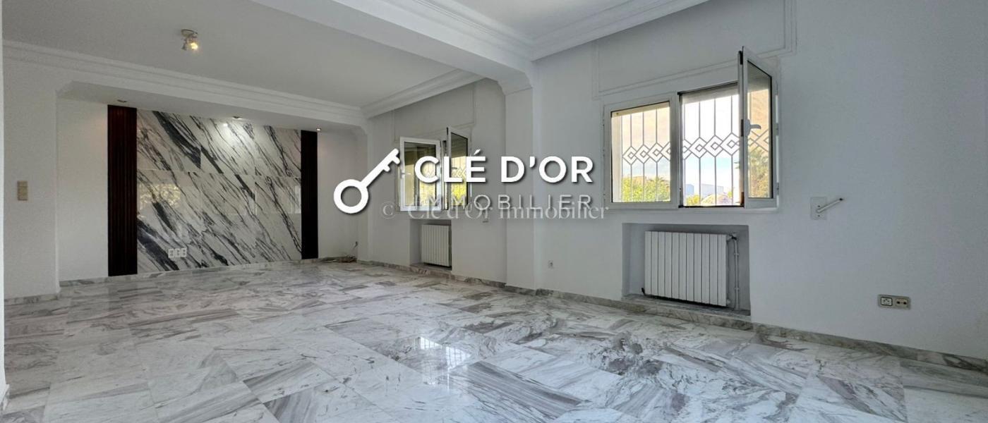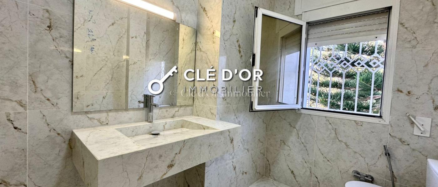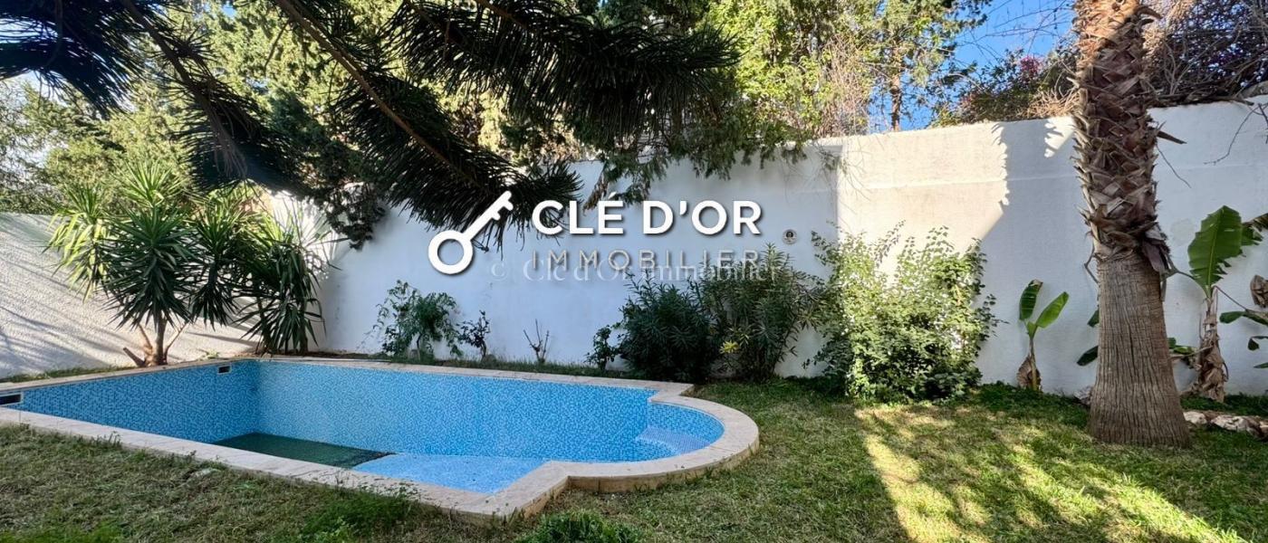 CLE D'OR IMMOBILIER met a la location : une magnifique villa idéalement située à Gammarth dans un quartier résidentiel calme, sécurisé et très recherché. Au Rez-de-chaussée vous serez accueilli: Un Grand salon spacieux et très lumineux, ouvert sur la piscine Un Salon de séjour indépendant Une Salle d’eau invités une Cuisine moderne entièrement aménagée A l' Étage : Une Suite parentale avec dressing et salle de bain 3 chambres confortables et bien éclairées Une Salle de bain commune Au Rez-de-jardin : 2 chambres de service Une Cuisine indépendante Une Salle d’eau Une Chambre pour le gardien Un Garage